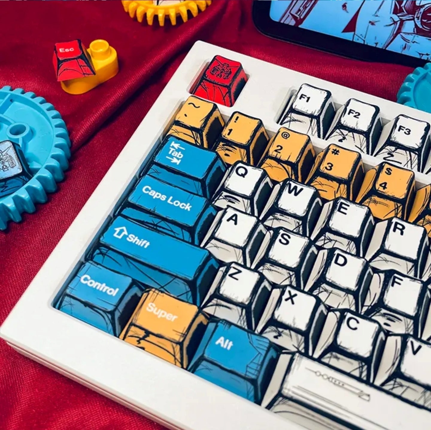 2D Comic Sketched Gundam Cherry PBT Keycaps 137 Keys