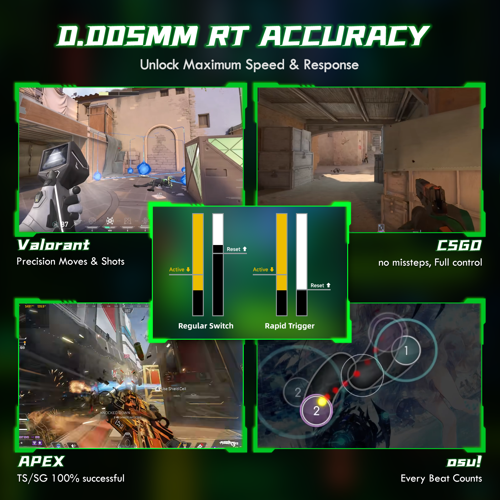 • 0.005mm Rapid Trigger Accuracy, Zero Dead Zone