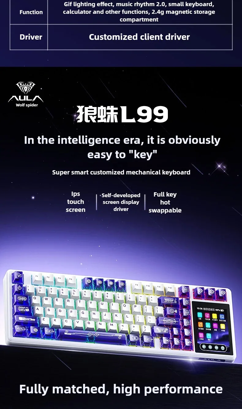 AULA L99 Wireless Mechanical Keyboard with 3.98" Smart Touchscreen