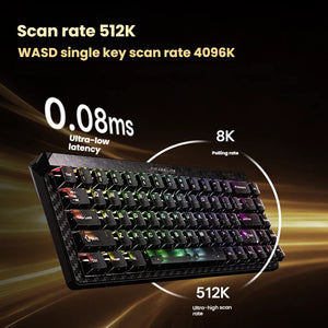 Experience a 512K global scan rate and an astonishing 4096K scan rate on WASD keys, paired with an 8KHz polling rate and 0.08ms response time. The TITAN 68 Turbo offers one of the fastest real-time input performances ever achieved on a keyboard — ideal for FPS, esports, and competitive gaming.