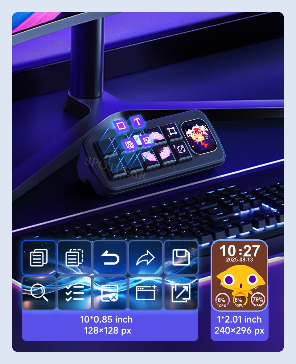 10 0.85-inch mechanical display keys with 128 × 128 resolution